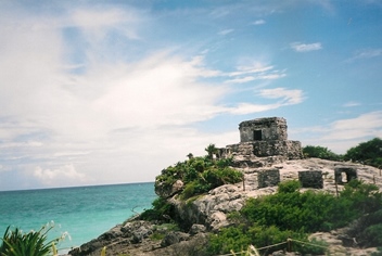 As viagens de autocarro têm a televisão bem alto ou rádio, e espectaores atentos que não se importam com a gritaria. É mesmo assim. Em Tulum, ficámos nos bungalows tradicionais junto à praia. Era só abrir a porta da cabana e dar um encontrão num gigantesco caranguejo azul e lá estavamos nós na praia, com o mar só para nós. Para termos uma refeição decente tínhamos que nos deslocar ao centro de Tulum, os nossos serviços de hospedagem eram limitados. Ainda assim, fizémos amigos com o dono do hotel vizinho que nos levou ao centro de Tulum e nos deu pão com Nutella no seu hotel. A Cláudia foi alvo de um ataque por mosquitos cujas picadas substitiram nas suas pernas no regresso a Portugal. Imensos turistas eral selvaticamente atacados e ao chegarmos a Cancun tivémos que levar a Cláudia à Cruz Vermelha, tal era a inflamação. A Hélia viu tartarugas a desovar, um luxo! Tulum foi um dos locais mais selvagens de praia em que eu estive, mas a especulação imobiliária não pára e aquela zona já estava em transformação.